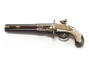 Макет пистолет кремневый двуствольный, под кость (Англия, 1750 г.) DE-1264