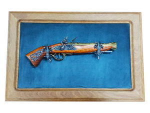 Мушкет кремневый (Австрия, XVIII век) на бархатном панно, 50×30 зеленый бархат, дуб