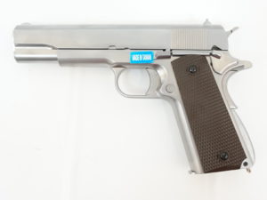 Страйкбольный пистолет WE Colt M1911A1, хром., коричн. накладки (WE-E006A)
