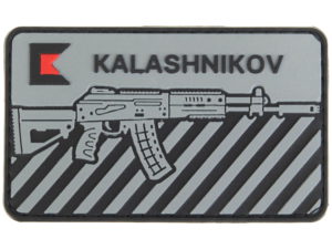 Патч (шеврон) Калашников КК логотип (RU), Серый/черный, 90х27 мм