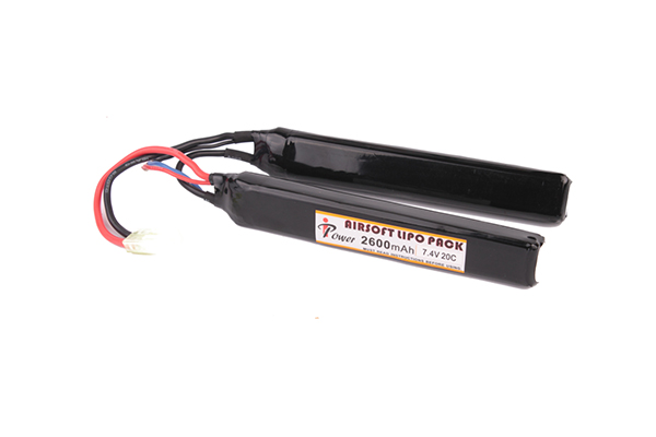 Литий-полимерный акумулятор (125х20х10 мм, 90 г) для установки на оружии для страйкбола системы АК. Характеризуется параметрами емкости 2600 mAh, напряжения 7.4V и разрядного тока 20C.