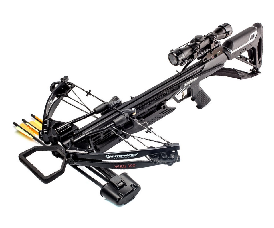 Эта модификации относится к самым легким в своем классе, и весит 4 кг, длина с максимально увеличенным прикладом – 96 см. В комплекте с арбалетом Жнец 390 поставляются оптический прицел, натяжитель тетивы, кивер, 3 стрелы, сборочный комплект с воском и ремень.