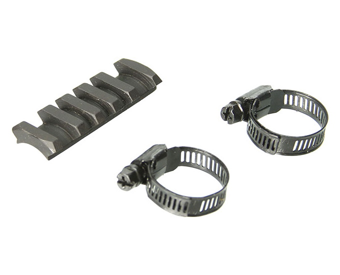 - Установите два стяжных хомута 3 так, чтобы они прошли через отверстия в оружейной планке.