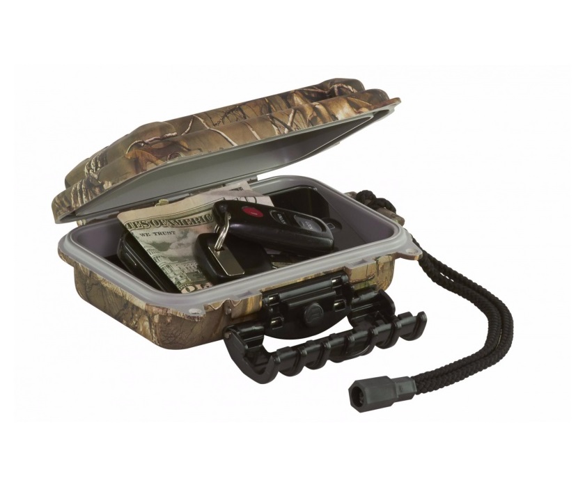 Футляр имеет камуфляжный рисунок (RealTree Xrta) и герметизирован с помощью собственной уплотняющей прокладки Dri-Loc от компании Plano. Он герметично закрывается и оснащен специальным нависающим замком с выпуском давления. Является полностью водонепроницаемым, что позволяет ему погружаться под воду на глубину 1 метра на 30 минут.