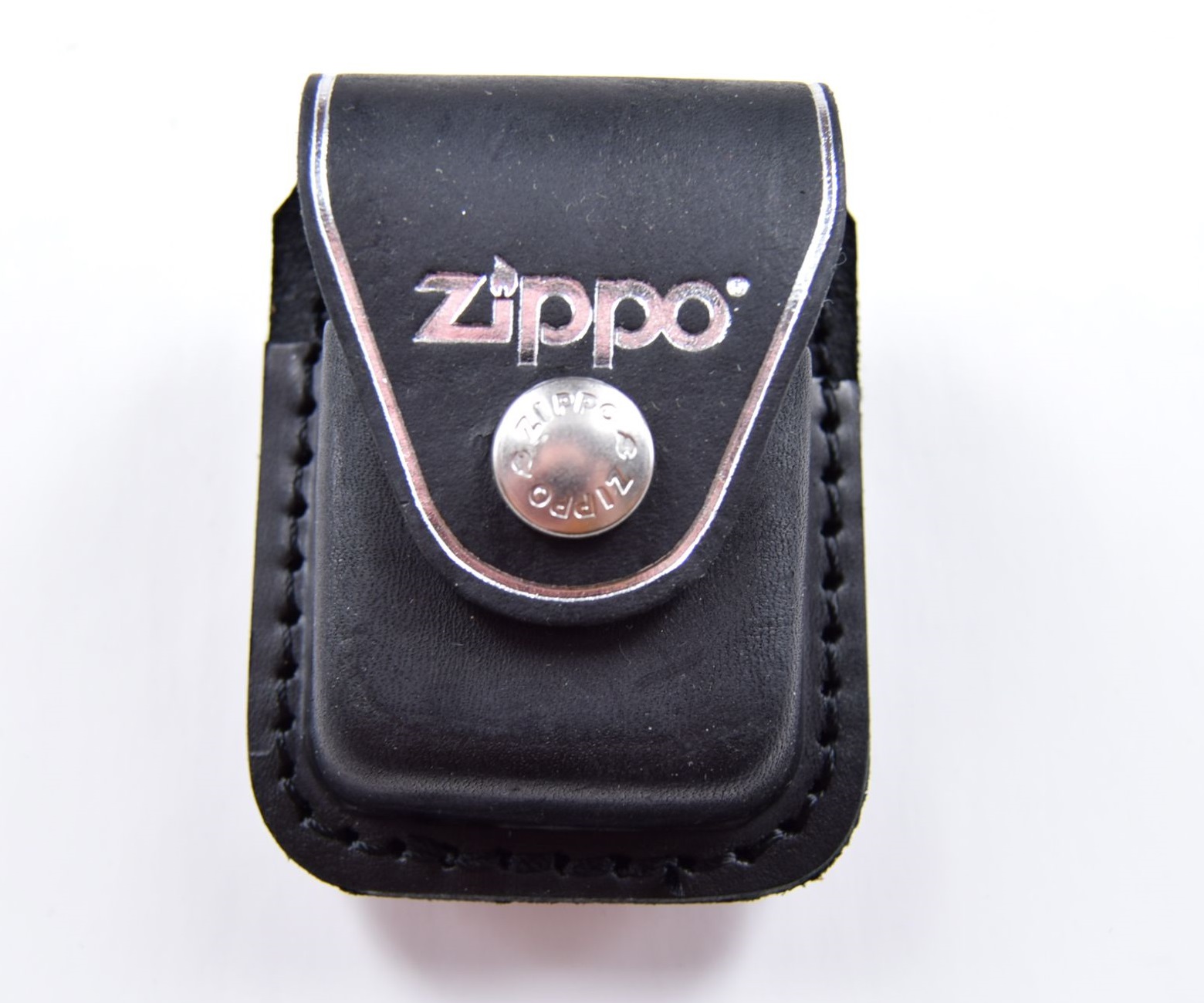 Черный кожаный чехол Zippo LPCBK с сильным металлическим зажимом на задней поверхности. Клапан легко, но четко закрывается. Имеет рельефный фирменный логотип Zippo. По краю украшен широкой отстрочкой.