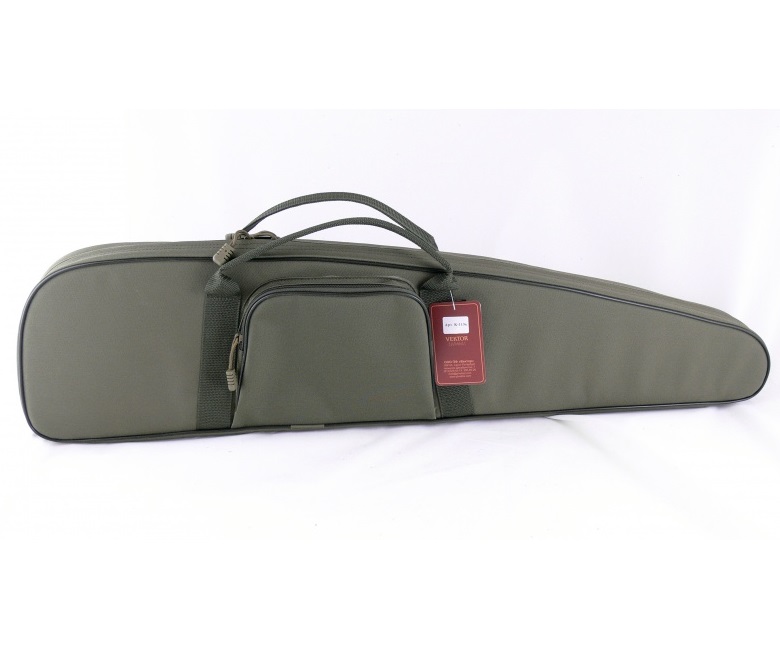 Чехол из капрона, рекомендован для хранения и транспортировки карабина «Сайга-20С». Материал использован плотный и износоустойчивый. Чехол содержит поролон и подкладку из смесового материала, которые защищают оружие от царапин и других механических повреждений. Закрывается на молнию с двумя замками. С одной стороны находится регулируемый ремень, который позволяет переносить чехол не только за ручки в горизонтальном положении, но и на одном плече вертикально. Снаружи находится небольшой карман для нужных мелочей, который закрывается молнией с одним замком. Внутри для более удобного размещения оружия в прокладке предусмотрена выемка..Также на чехле имеется специальная петля, которую удобно использовать при хранении чехла, подвешивая его. Длина внешняя 95 см, внутренняя 92 см.