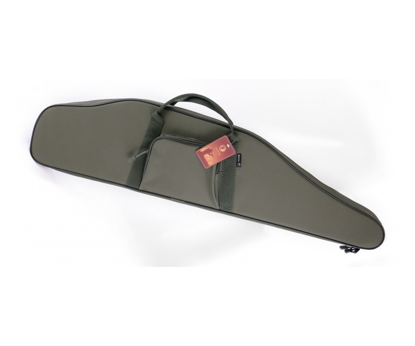 Чехол из капрона, рекомендован для хранения и транспортировки винтовки с оптическим прицелом. Материал использован плотный и износоустойчивый. С одной стороны находится регулируемый ремень, который позволяет переносить чехол не только за ручки в горизонтальном положении, но и на одном плече вертикально. Чехол содержит поролон и подкладку смесового материала, которые защищают оружие от царапин и других механических повреждений. Закрывается основное отделение на молнию с двумя замками. Также на чехле имеется специальная петля, которую удобно использовать при хранении чехла, подвешивая его. Длина внешняя 112 см, внутренняя 108 см.
