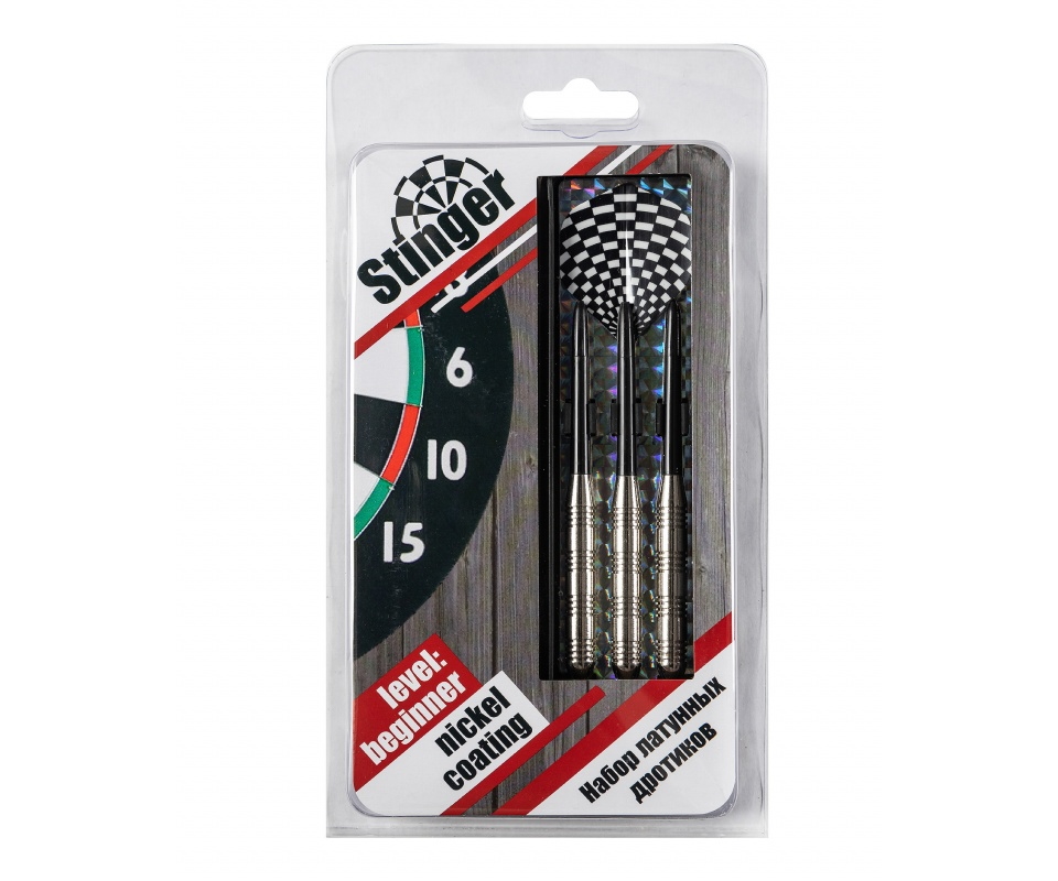 Дротики для дартса Stinger, 3 шт., уровень — любительский, игла — сталь, хвостовик — нейлон, оперение — PVC, вес 19 грамм, баррель — латунь покрытый никелем.