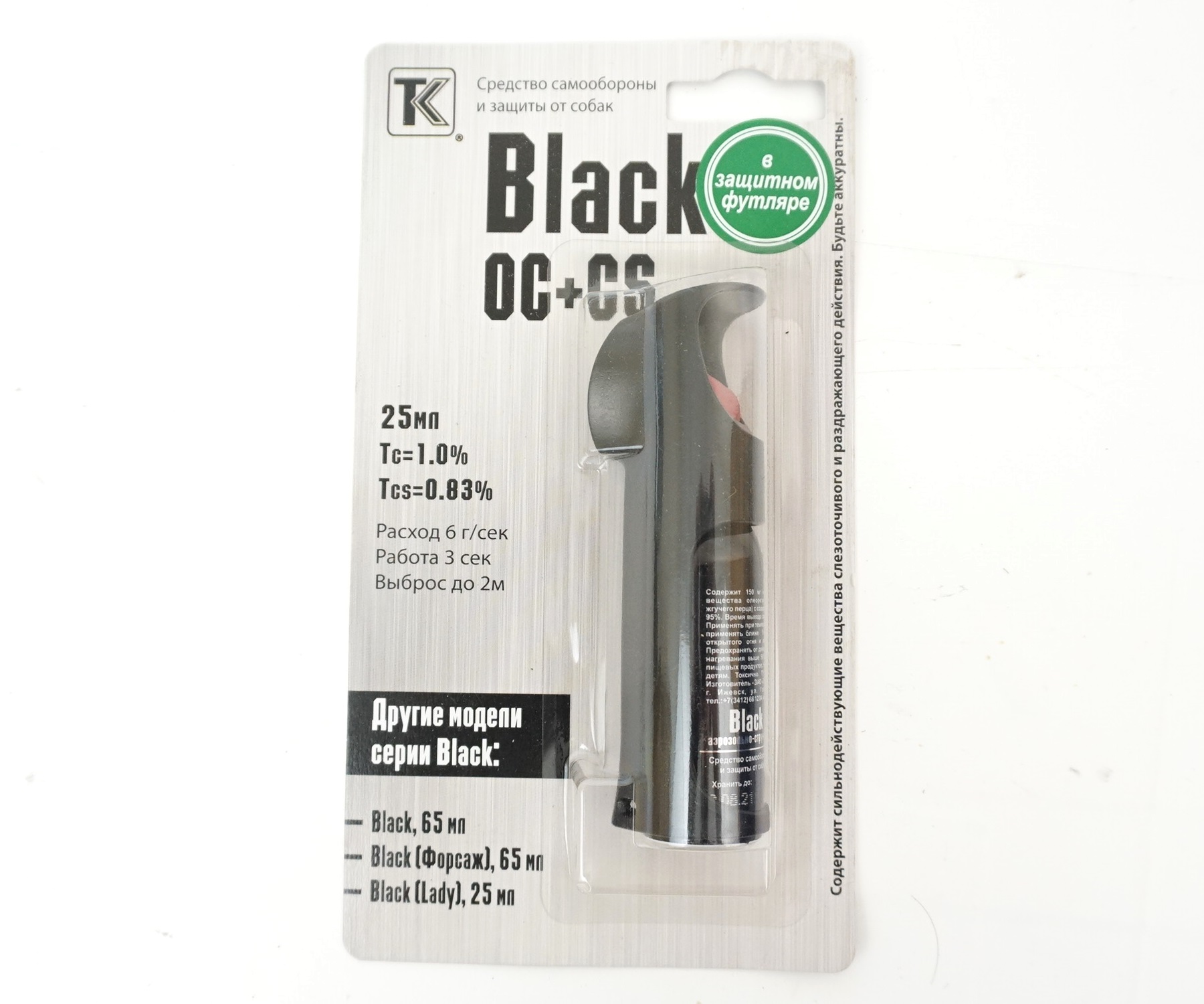 Описание газового (перцового) баллончика Black, 25 мл (в защитном футляре):