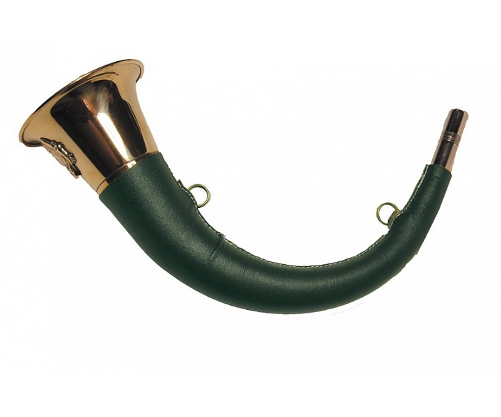 Горн длиной 45 см из латуни с мундштуком предназначен для подзыва охотничьей собаки. Встроенный пищик освобождает от необходимости учиться правильно извлекать звук. Каждый охотничий рог имеет индивидуальный тон.