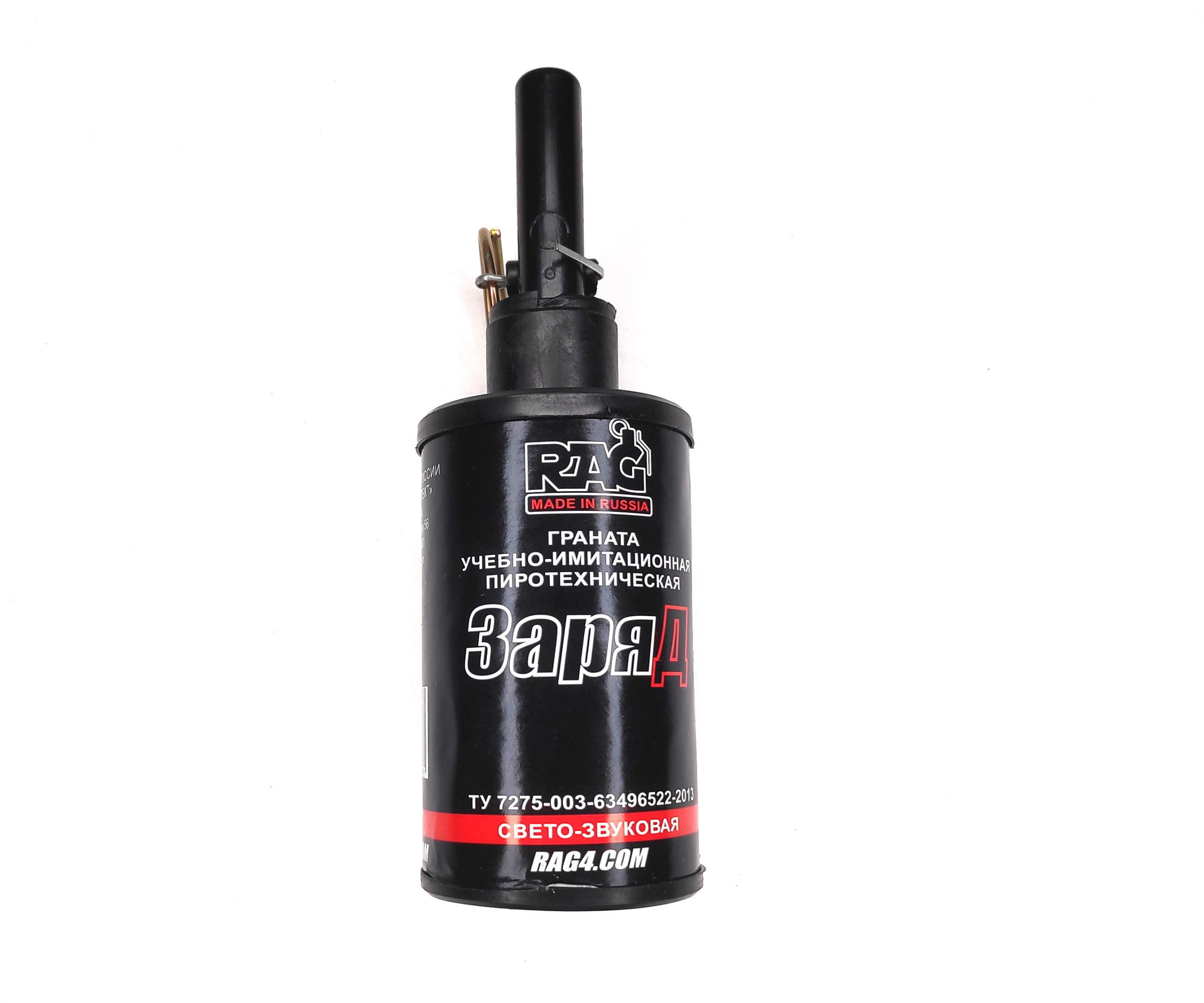 RAG «ЗаряД» наиболее громкая из пиротехнических гранат линейки RAG, применяется для имитации выстрела, разрыва свето-звуковой гранаты нелетального действия с очень громким хлопком и яркой вспышкой, используется при проведении военно-спортивных игр и обучению навыкам обращения с ручными безосколочными гранатами.