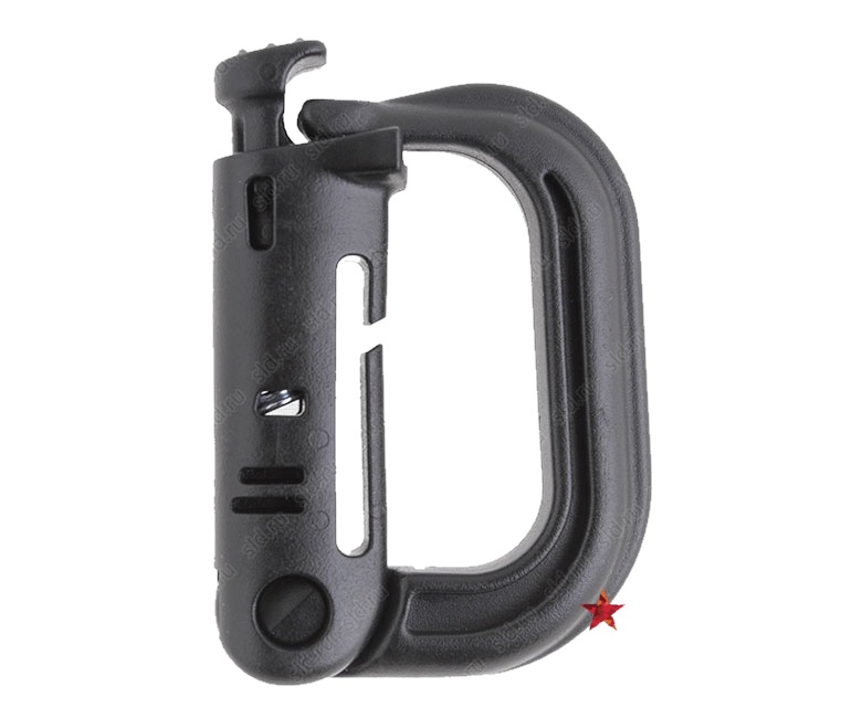 Пластиковый карабин, способный раскрываться пополам. За счет специальной прорези в корпусе, он может закрепляться на 25 мм стропе PALS или креплении MOLLE. Применяется для крепления подсумков, снаряжения и экипировки на нейлоновые ремни, ремневые крепления или аналогичные по назначению конструкции (шнуры, веревки, стропы и т.д.).