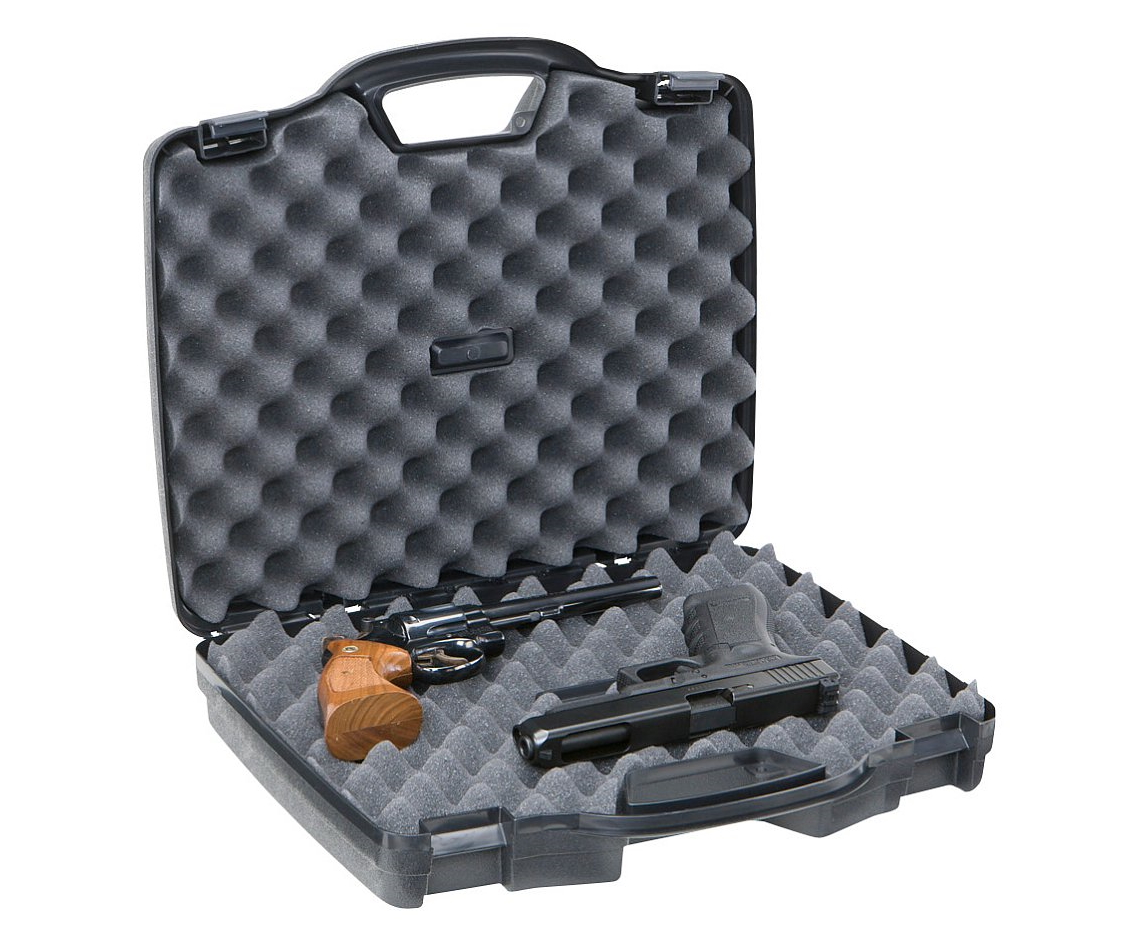 Кейс Plano 140201 Pro-Max Double Pistol Case – предназначен для хранения и безопасной переноски (транспортировки) двух пистолетов и/или револьверов, в том числе с оптическими, коллиматорными и диоптрическими прицелами. Для предотвращения смещения и повреждения оружия при переноске или перевозке внутри футляра имеются две толстые рельефные прокладки из плотного поролона (эластичного пенополиуретана).Удобные, надежные и легкие в использовании замки (защелки) позволяют ему открыться даже при сильных ударах и тряске. Предусмотрена возможность при хранении и транспортировке закрыть кейс на навесной замок. При установке на изделие навесного замка исключается доступ посторонних лиц, в том числе и детей к оружию, кроме того, упрощает транспортировку и перевозку оружия общественным транспортом, так как в этом случае оно должно находиться перевозятся в специальной таре (чехлах, кобурах или специальных футлярах). Изделие одобрено многими авиакомпаниями.