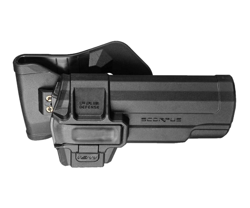 - Противоскользящий зажим обеспечивает плотное и надежное размещение оружия в кобуре;