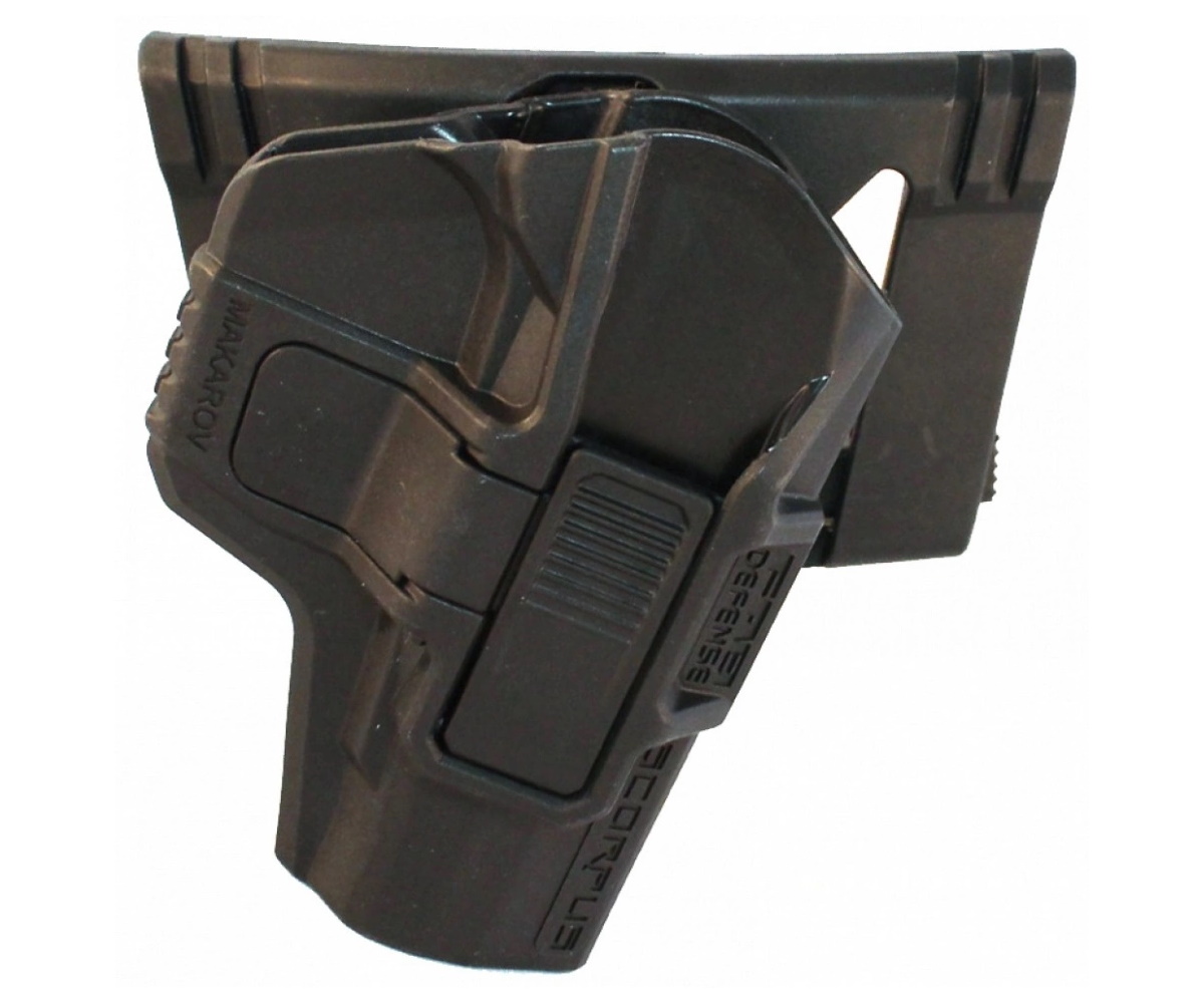 - Пистолет фиксируется в двух точках корпусом изделия как пружиной, что обеспечивает безопасное ношение и быстрое извлечение