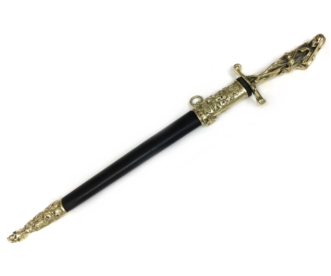 Эфес состоит из латунных рукояти и крестовины отлитых воедино. Рукоять прямая, фигурная, изображающая Смерть — женский скелет в длинном плаще. Гарда образована прямой латунной фигурной крестовиной с расширяющимися утолщенными окончаниями, в виде большой берцовой кости.
