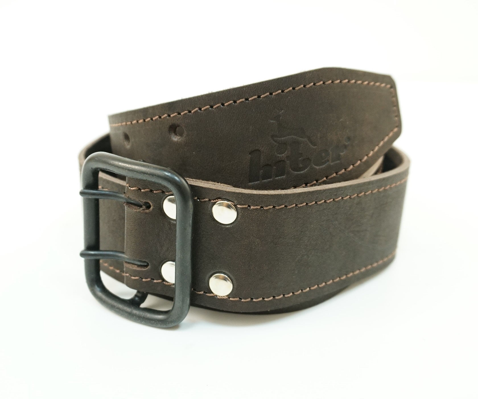 Кожаный ремень Hiter шириной 45 мм из натуральной кожи коричневого цвета. Прочный, надежный, крепкий. Прошит с обеих сторон, что увеличивает срок службы изделия и сохраняет надолго внеший вид. Материал пряжки — хром матированный.