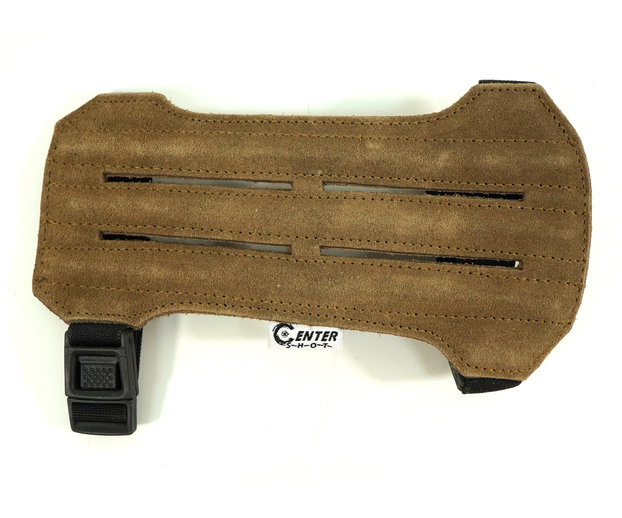 Крага из натуральной замши с ребрами жесткости. Защищает предплечье. Для ношения при стрельбе из блочных луков. Крепится на карабинах.