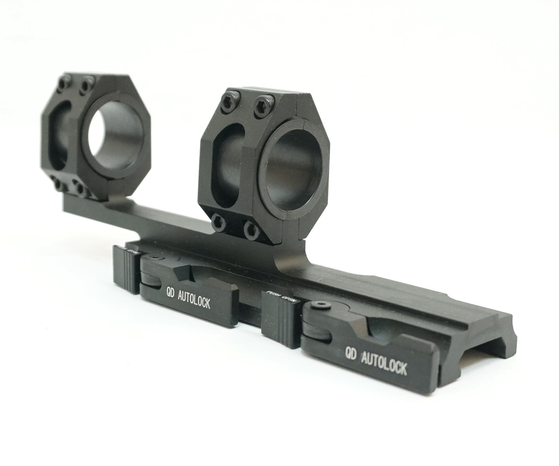 BH-MS24 – высокопрофильный быстросъемный монолитный кронштейн с кольцами, с высотой посадки 23 мм, пригодится для установки оптических и коллиматорных прицелов с размером трубки 25,4 или 30 мм, на планку Weaver. Корпус моноблока, длиной 110 мм, с выносом 36 мм выполнен из алюминиевого сплава, поверхность анодирована, устойчива к коррозии. Фиксируется на базе оружия двумя защелками, которые можно прикрутить рукой. Двойное крепление колец.