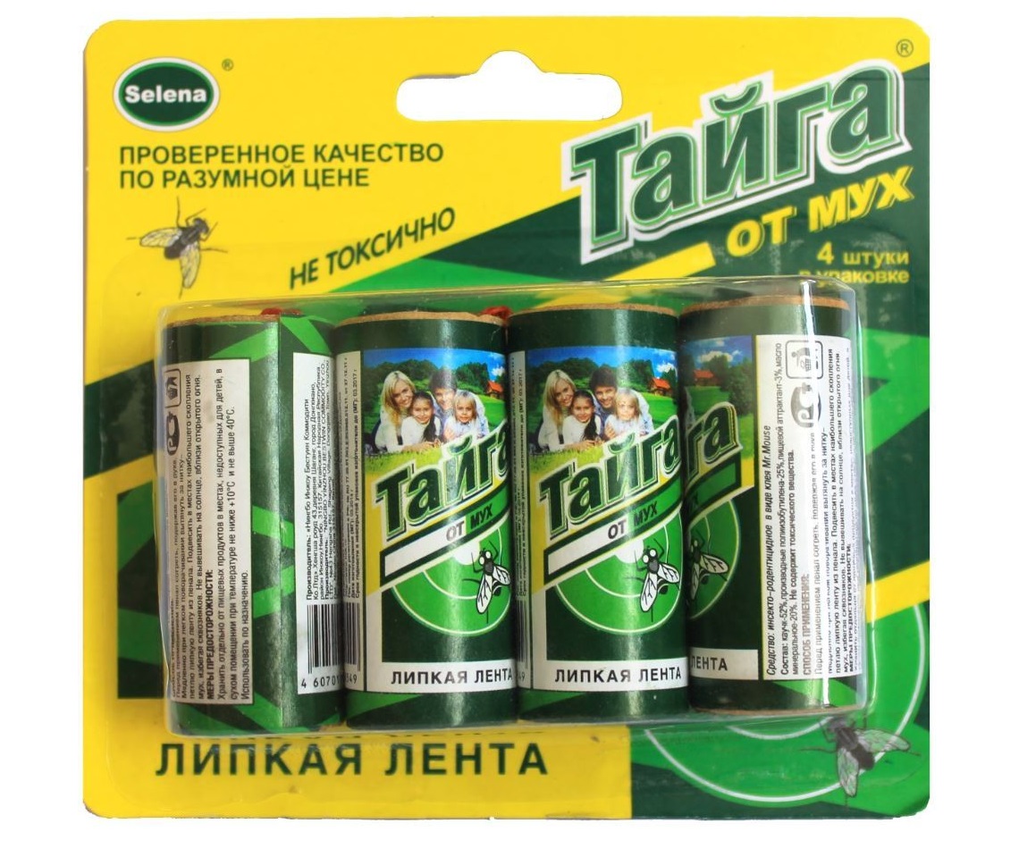 Липкая лента от мух Тайга 4 шт. на блистере — это приманка хорошо известная на российском рынке. Одна такая приманка, размещённая в центре комнаты или в местах скопления насекомых, защитит помещение общей площадью до 30 квадратных метров. Клеевой слой остаётся липким в течение 30 дней вне зависимости от окружающей влажности и температуры воздуха.