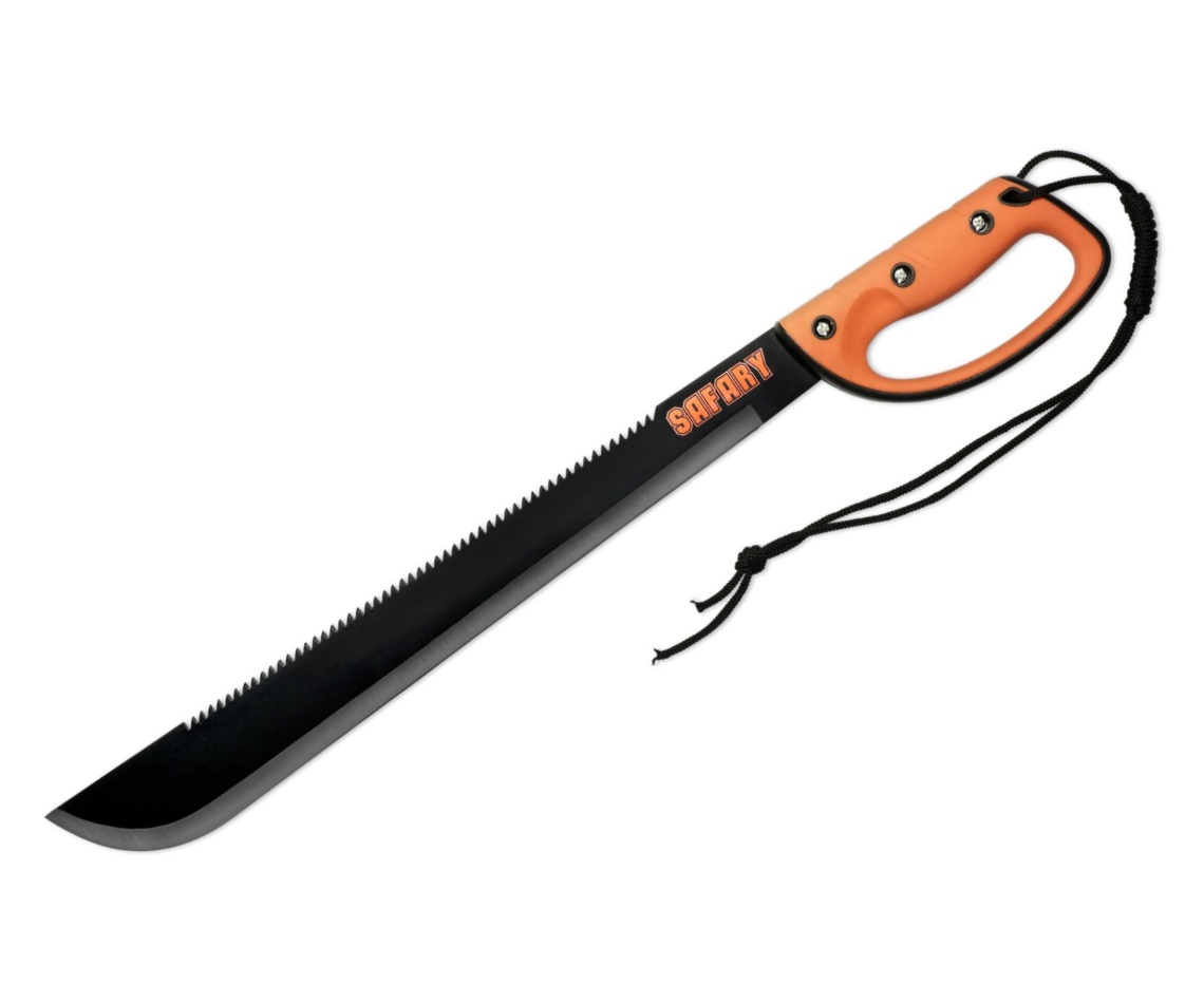 Благодаря антибликовому покрытию клинка он идеально подходит для лесных условий, такое покрытие, кроме того, повышает защищенность инструмента от воздействия влаги. На прямом обухе мачете находятся зубья серрейтора. Ближе к рукоятке на клинке присутствует надпись «SAFARY» оранжевого цвета, выполненная лазерной гравировкой.