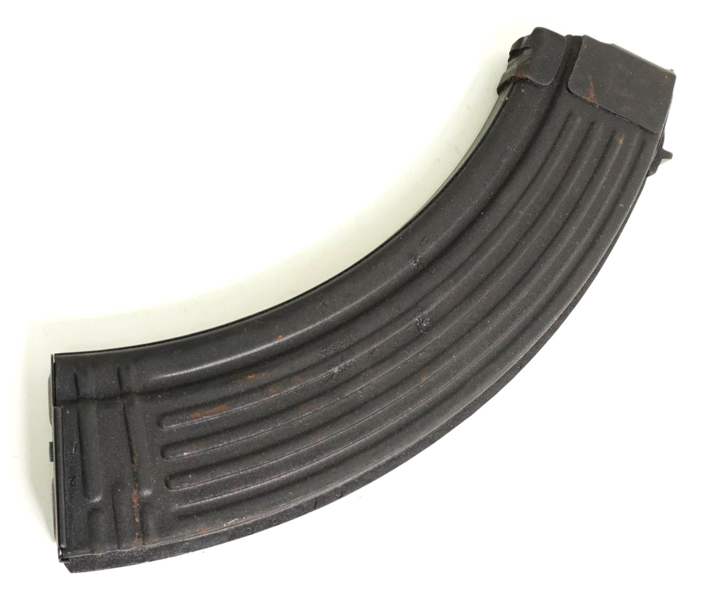 Дополнительный магазин для ручного пулемета Калашникова РПК калибра 7,62х39 мм на 40 патронов, армейский оригинал времен СССР. Также подходит для автоматов Калашникова данного калибра и для макетов, охолощеных автоматов на его основе. Металлический, ребристый, черного цвета.