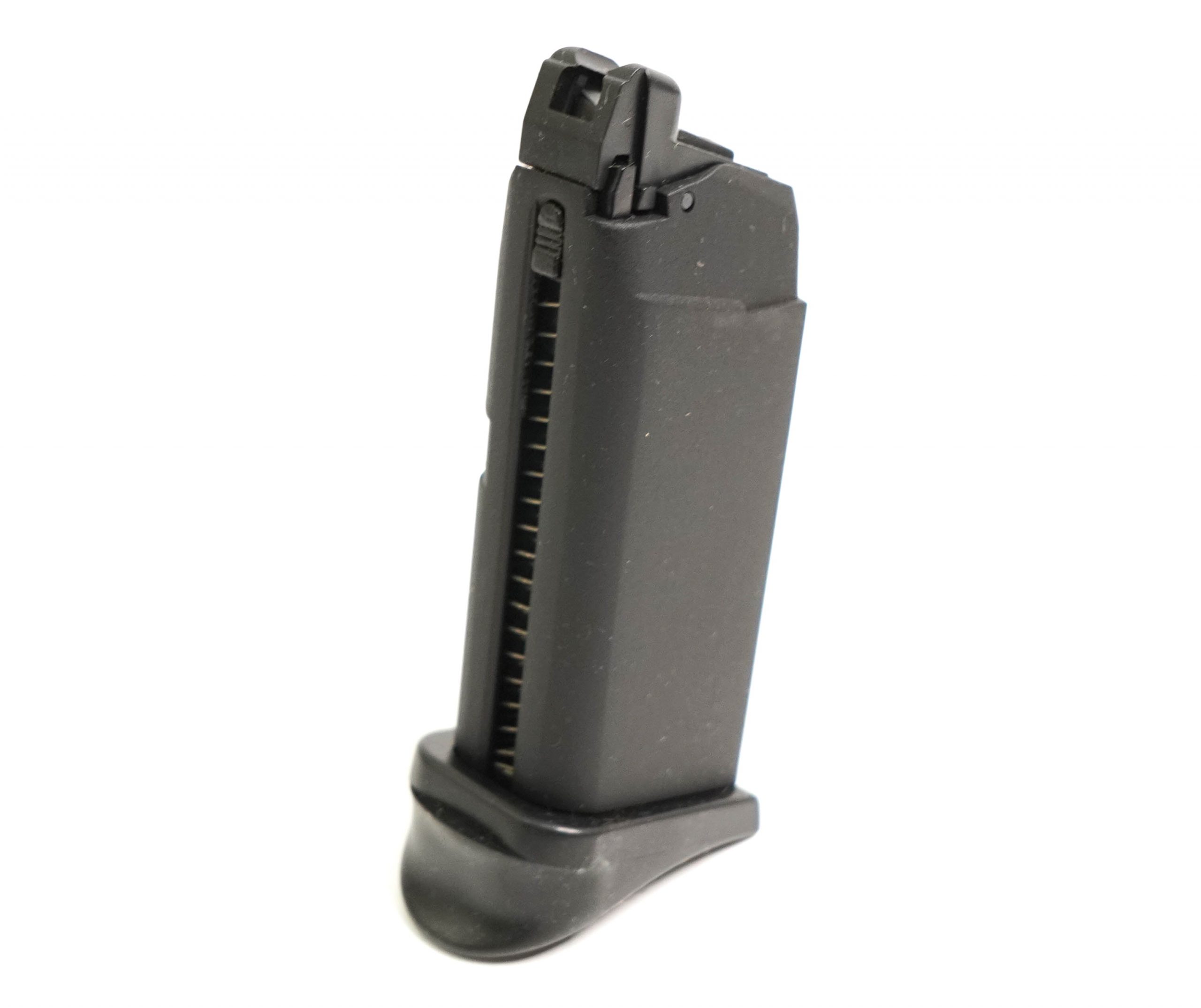 Запасной магазин для страйкбольного пистолета KJW Glock G27 Gas (на грин-газе), вместимость составляет 14 шариков. Подходит также и для аналогичных моделей пистолетов фирмы WE.