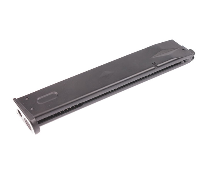 Запасной магазин длинный для страйкбольного пистолета WE M92 (на грин-газе), вместимость составляет 50 шариков. Подходит также и для аналогичных моделей пистолетов фирмы KJW.