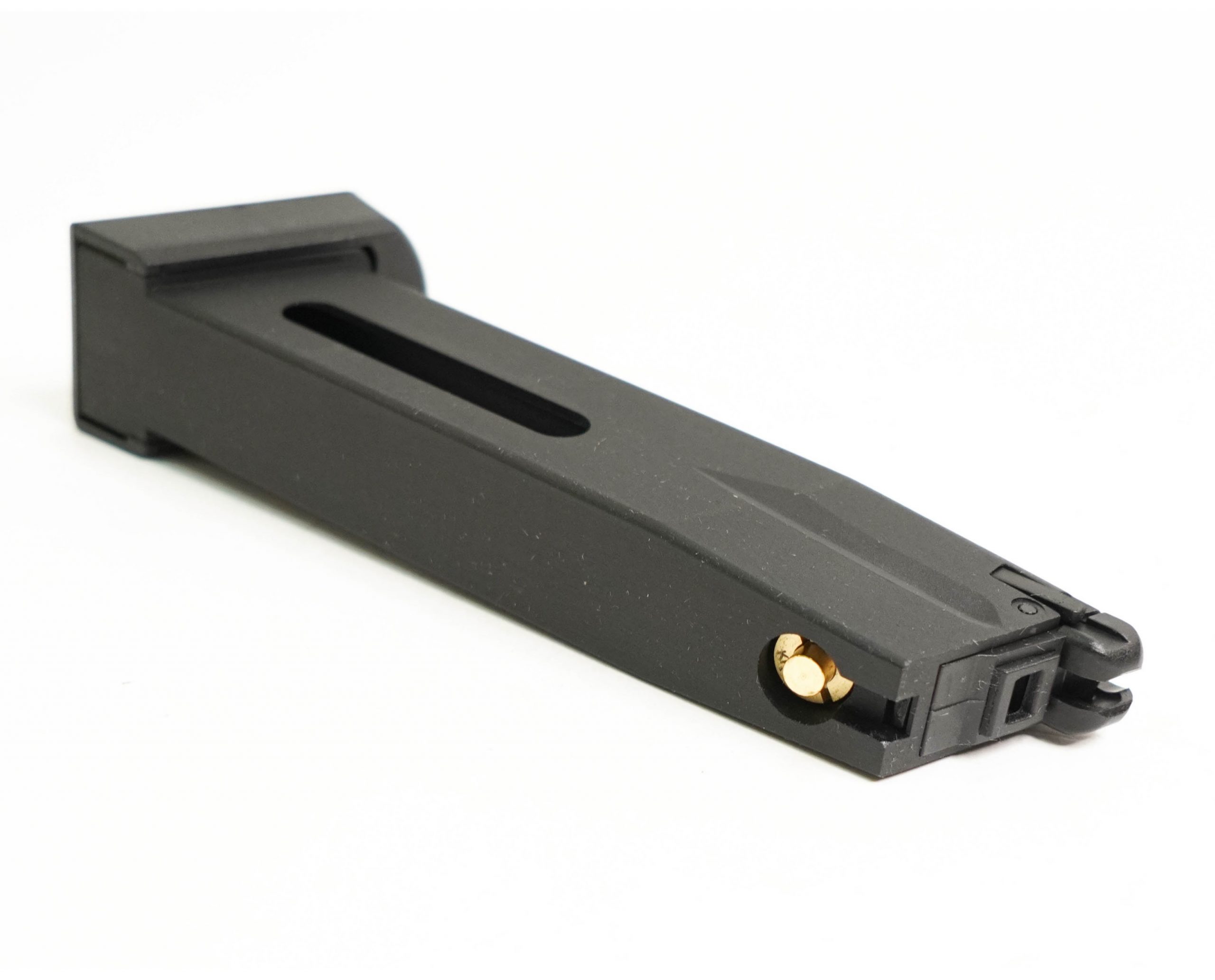 Запасной магазин для страйкбольного пистолета KJW CZ-75 CO₂ (на углекислом газе), вместимость составляет 24 шариков. Подходит также и для аналогичных моделей пистолетов фирмы WE.