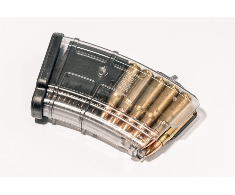 Магазин для Сайги МК 7,62 х39 — прозрачное изделие с наращённой передней стенкой и тонкой защелкой, что выгодно отличает его от аналогов от АКМ. Плотно фиксируется, в большинстве случаев не требует напилинга для использования.