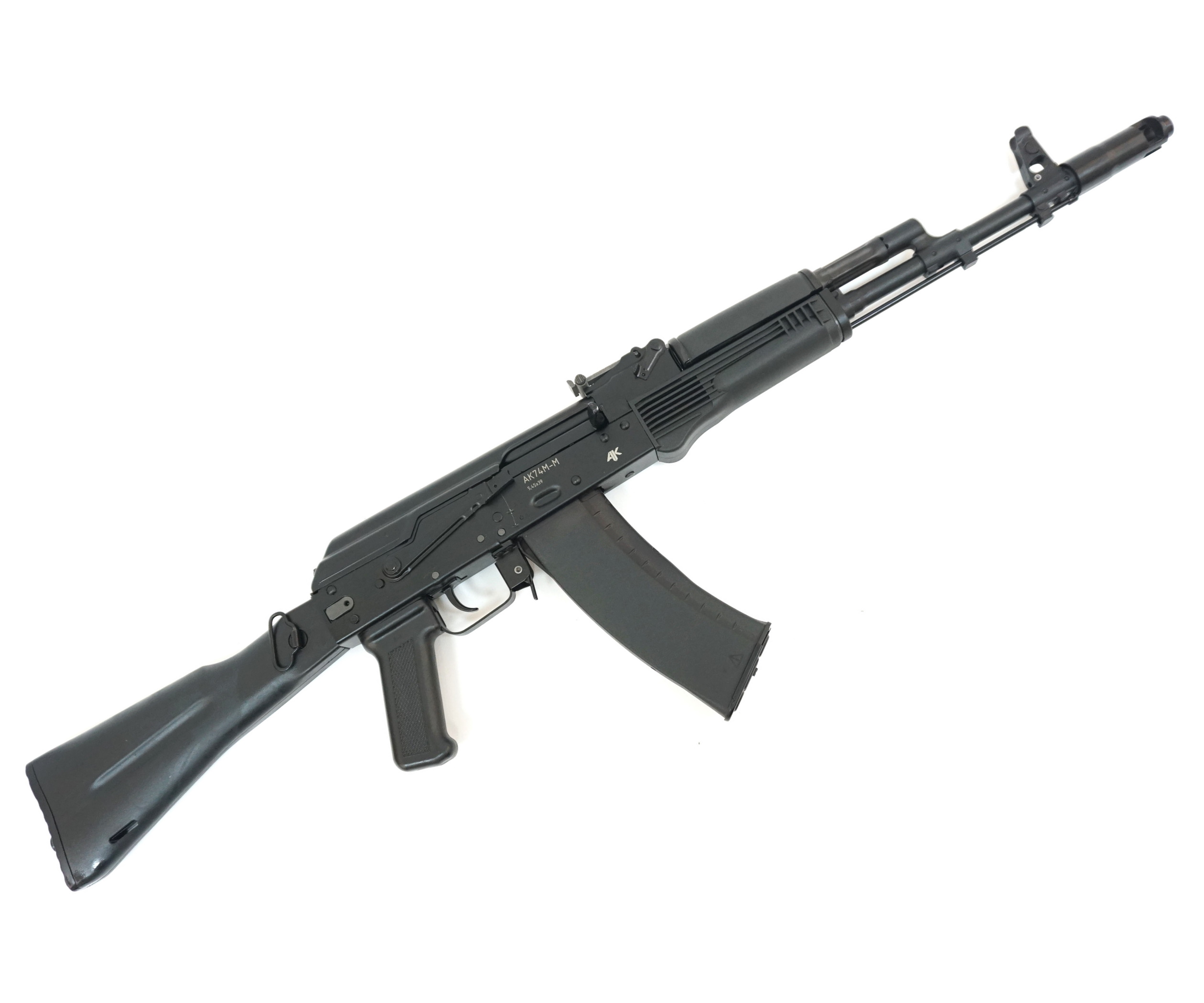 ММГ автомат Калашникова АК-74М-М, складной приклад – это полноценное по внешнему виду и габаритным размерам изделие, сходное со стрелковым оружием, но не предназначенное для решения боевых задач. Модернизированный АК-74М – это последняя модификация в линейке индивидуального оружия образца 1974 года. И сегодня АК-74М в строю, и состоит на вооружении армий многих стран и спецподразделений.