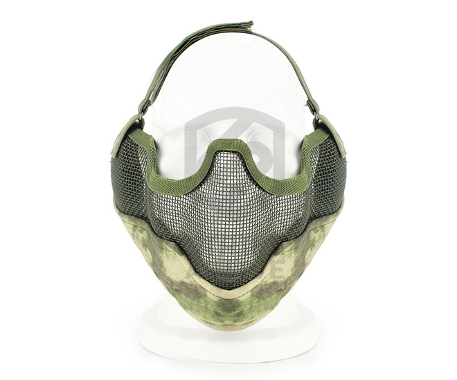 Облегчённая защитная маска изготовлена из жестяной сетки, что позволяет надежно защищать от травм нижнюю часть лица, нос и уши.