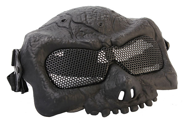 Страйкбольный вариант защитной маски. Изделие создает защиту верхней части лица, лба, а также передней верхней части головы. В масочном корпусе применен качественный прочнейший пластик. Стальной перфорированный лист выступает в роли линзы. Имеются специальные отверстия, обеспечивающие дыхание носом и ртом. В районе носа и лба расположены специальные смягчающие вставки.