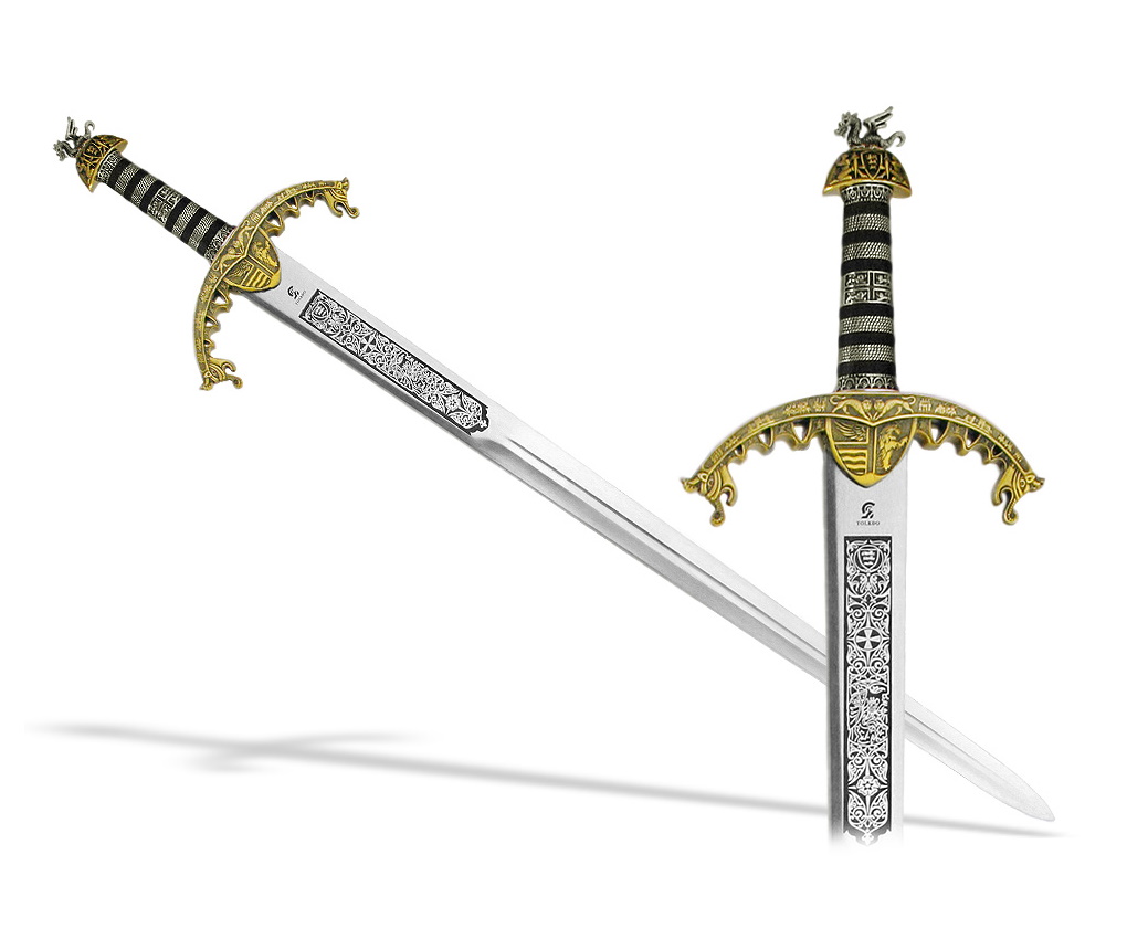 Меч Ричарда «Львиное Сердце» (Richard The Lionheart Sword) изготовлен на всемирно известной фабрике Art Gladius в Толедо, Испания. Его богато украшенная рукоять украшена геральдическими львами, лилиями флёр-де-лис, батальными сценами, а навершие меча увенчано Драконом. Черная кожаная рукоятка оснащена проставками и эмблемой белого знамени с красным крестом и изображением Льва в каждом квадранте.