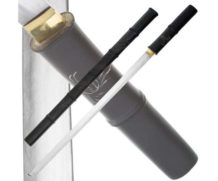 Предполагают, что одной из причин того, что мечи ниндзя были прямыми была возможность замаскировать их под бамбуковый посох. Эти скрытые в тростях мечи назывались сикомидзуэ. Такой предмет в руках безликого странствующего монаха не вызывал подозрений и опасений и это позволяло подобраться к врагу на расстояние удара. Чтобы поместиться в бамбуковых ножнах, клинок меча ниндзя должен быть достаточно тонким, сужающимся к кончику.