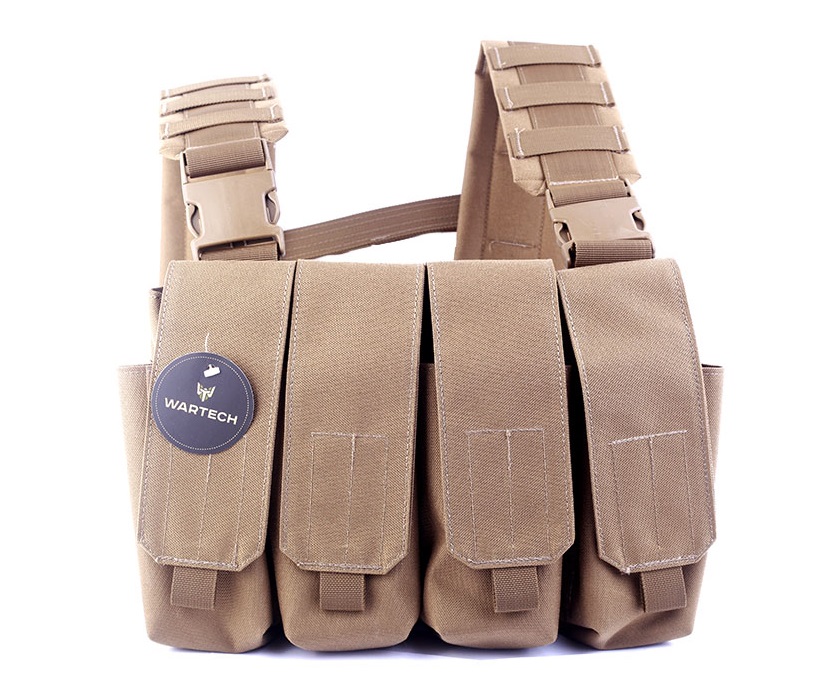 Нагрудный разгрузочный жилет Wartech Chest Rig MK2 — это платформа предназначенная для размещения снаряжения в области живота, имеющая при этом открытую спину. Пришитые подсумки спереди (4 штуки), рассчитаны на 8 магазинов АК серии. Подсумки закрываются на клапан на липучке. Подсумок с клапаном очень удобен в лесу, так как меньше попадает грязь.