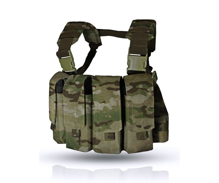 Нагрудный разгрузочный жилет Wartech Chest Rig MK2 — это платформа предназначенная для размещения снаряжения в области живота, имеющая при этом открытую спину. Пришитые подсумки спереди (4 штуки), рассчитаны на 8 магазинов АК серии. Подсумки закрываются на клапан на липучке. Подсумок с клапаном очень удобен в лесу, так как меньше попадает грязь.