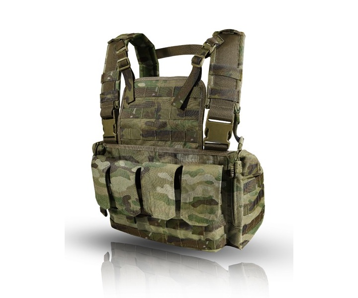 Нагрудник имеет MOLLE стропы по всей площади жилета для установки дополнительных подсумков и иного снаряжения. Доступен в различных цветах, данный вариант представлен в цвете multicam оригинал. Подходит для использования как сотрудникам силовых структур, так и для военно-тактических игр.я как сотрудникам силовых структур, так и для военно-тактических игр.