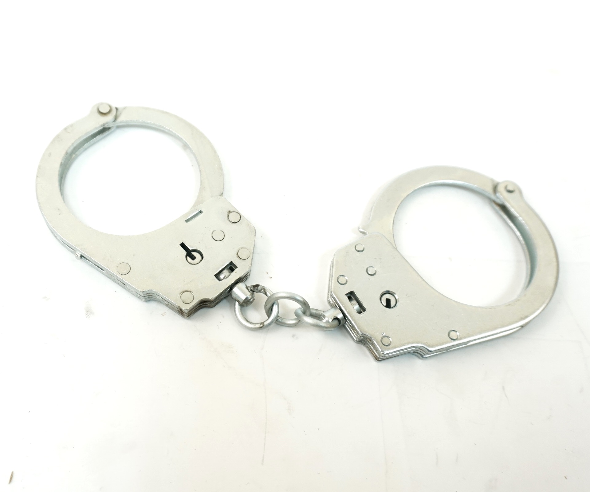 Модель никелированных наручников Крот выполнены в виде зажимных колец соединенных очень крепкой цепью из 3 звеньев. В стандартный комплект входят сами наручники и два ключа. Общий вес комплекта составит 400 грамм. Металл для цепи и самих наручников чрезвычайно прочный, его невозможно порвать без специальных приспособлений, да и с их помощью придется помучиться. Легированная сталь, из которой они выполнены, очень тяжело поддается механическим воздействиям.