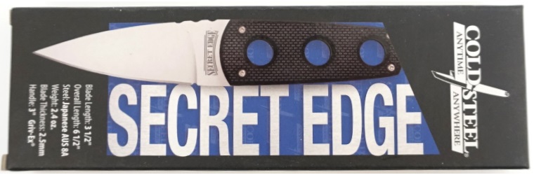 Cold Steel Secret Edge относится к продолжению шейного варианта изделий, имеющего возможность скрытого ношения. Наличие ультратонкого профиля и достаточного легкого веса делают ношение под одеждой незаметным, а со стороны окружающих не будет ненужного внимания.