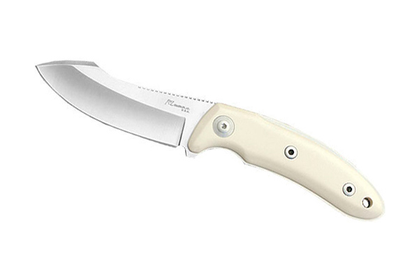 Белоснежная микарта в рукоятке снабжается специальным видом подпальцевого упора, что обеспечивает удобнейшую работу ножа с использованием различных хватов. Достоинством микарты является инертность к химикатному воздействию, увеличивающее время работы изделия.