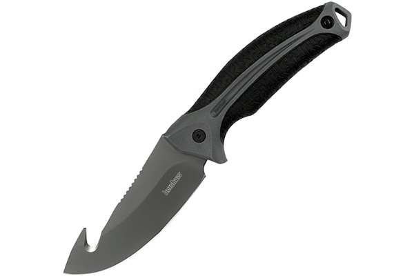 Lone Rock Large Gut Hook является мощным ножом, имеющий фиксированный клинок. По своему функционалу данный скинер относится к охотничьим инструментам, которые используются для освежевания добычи. Среди свойств скинера можно выделить его возможность разделывать туши животных крупного и среднего размера. Kershaw Knives из Америки изготавливает данный нож, но производственные мощности распределены в Китае. 8Cr13MoV сталь высокоуглеродистой марки из Китая применена в материале клиента. Также в состав входит ванадий, молибден и хром, что создает более высокую износостойкость, прочность и упругость. При этом остается возможность проведения закалки до получения значительного параметра твердости. Kershaw применила высокотехнологический метод, который при обработке металла позволяет получить надежную долговременную заточку на режущей кромке. Это важный момент для скинера, что позволяет уменьшить необходимость проведения исправления лезвия при его использовании. Длинная скинерская дуга в лезвии осуществляет плавный переход к острию, имеется скошенный обух, а также зубчатая насечка средней части. Конец клинка имеет крюк, которым вспаривается брюшина. Этот элемент осуществляет операцию довольно аккуратно, фиксируется необходимая глубина, что невозможно при использовании других вариантов резки. Имеются вогнутые и высокие спуски, а также обычный вариант заточки. Карбонитридный титан покрывает клинок, имеющий слой 3 микрона, что позволяет придавать антикоррозийные свойства и прочность.