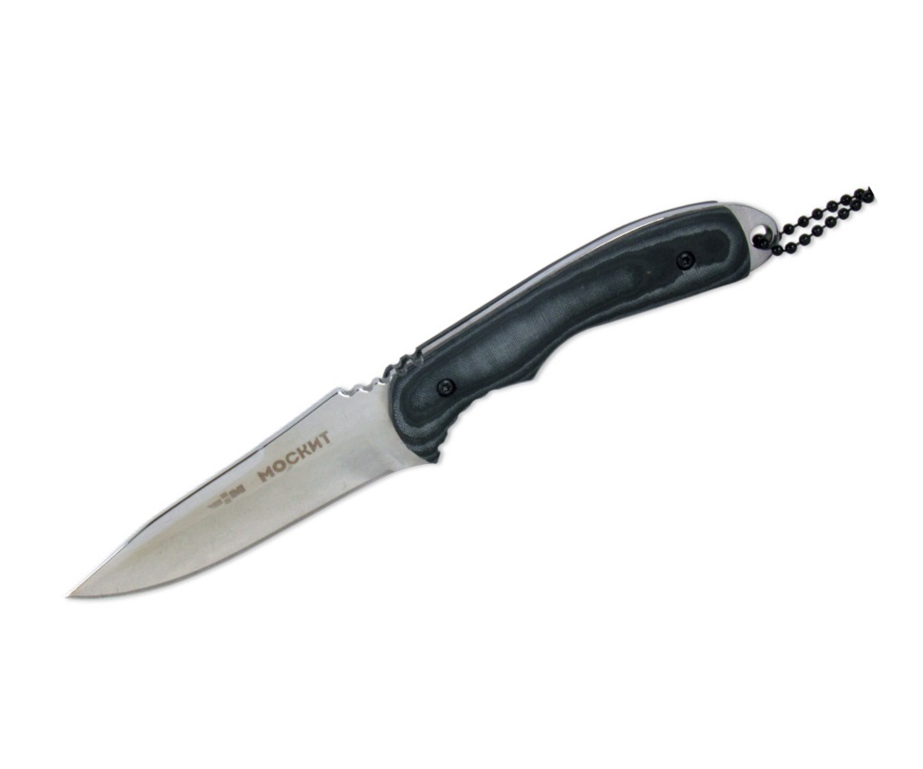 Нож нескладной специальный Москит H-188M «Ножемир» — это удобный клинок универсального назначения, выделяющийся зеркальной полировкой его лезвия. Основной материал изделия – сталь марки 65Х13 с антикоррозийными свойствами, клинок ножа закален до 55-56 Hrc. У обуха клинка толщина 3 мм.