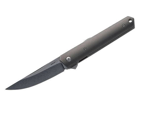 Походный нож от дизайнера Лукаса Бернли Kwaiken Flipper, предлагаемый компанией Boker, выполнен в виде стильной стальной модели, имеющей острый клинок и титановую рукоять. Относится к классу EDC (Every Day Carry).