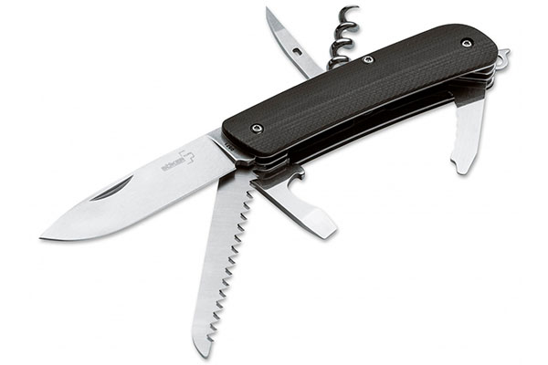 Boker 01BO808 Tech-Tool City 6 — складной нож от известного немецкого концерна, завоевавшего собственный сегмент рынка за несколько столетий работы. Он принадлежит к серии с темными накладками и оптимальным набором инструментов. Каждая модель рассчитана на своего покупателя, который выбирает содержание набора по собственному вкусу.