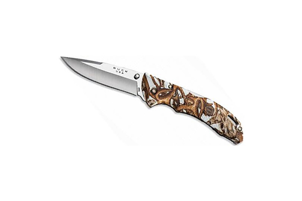 Бюджетный вариант ножевой линейки BUCK. Изделие достаточно легкое, имеет вес 88 грамм. Ударопрочный пластик использован в выполнении рукояти, на ней нет стальных лайнеров. От этого параметра получается более маленькая цена изделия. К недостаткам относится необходимость проведение складывания с помощью двух рук. При осуществлении сложения одной рукой может произойти «укус» руки. В соответствии с другими параметрами, применяется отличный тип исполнения старого доброго Buck. Отмечается отсутствие неисправностей и люфтов.