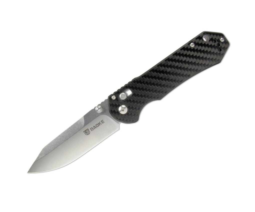 Оригинальный и стильный вид складному ножу придает карбоновая рукоять с пиксельным рисунком. С ней гармонично сочетается матированное лезвие, обработанное пескоструйным воздействием. Основой острия является надежная сталь 440С, обладающая отличными режущими свойствами. Твердость клинка 58 HRC позволяет режущей кромке хорошо держать заточку и сократить объем обработки точильным камнем.