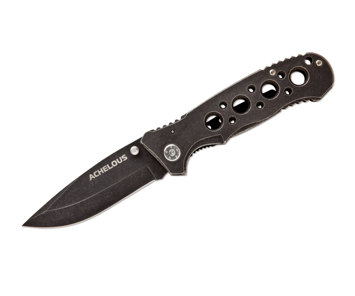 Нож складной Чёткий расклад Achelous A-140 – это инструмент скелетного типа, со складной конструкцией и эффектным исполнением. Такой нож отлично справится с нарезкой продуктов на пикнике или в туристическом походе, а также подойдет для выполнения других задач в быту и в походных условиях. Рукоятка со сквозными отверстиями по всей ее длине обеспечивает снижение общего веса изделия.