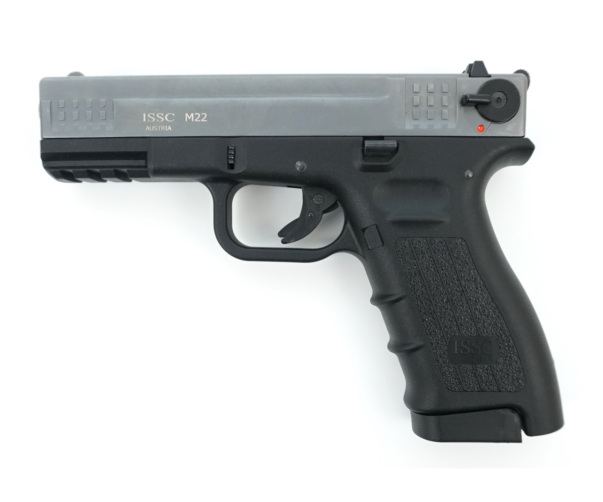 - Копия австрийского пистолета М22 от компании ISSC, в свою очередь, представляющего собой малокалиберную копию пистолетов Glock.