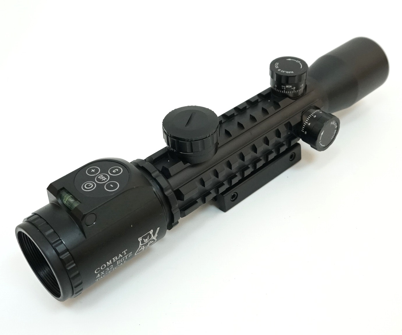 Combat 4×32 EGTZ относится к категории оптических прицелов закрытого типа. Его основная отличительная черта заключается в присутствии удобного дисплея управления подсветкой и прицельной маркой. Кнопки расположены весьма эргономично, что без труда позволяет настроить прибор или наоборот сбросить настройки яркости прицельной марки. Наличие кнопки выключения прицела позволяет одни нажатием включать и выключать прибор по мере необходимости, тем самым экономя энергию заряда батареи.